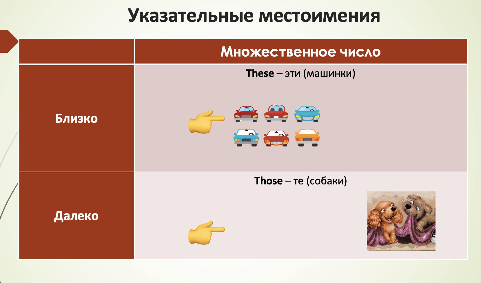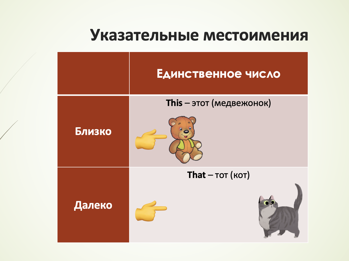 Указательные местоимения (Demonstrative Pronouns) — это слова, которые указывают на предмет, его расположение или близость к говорящему. В английском языке их всего четыре: this, that, these, those.